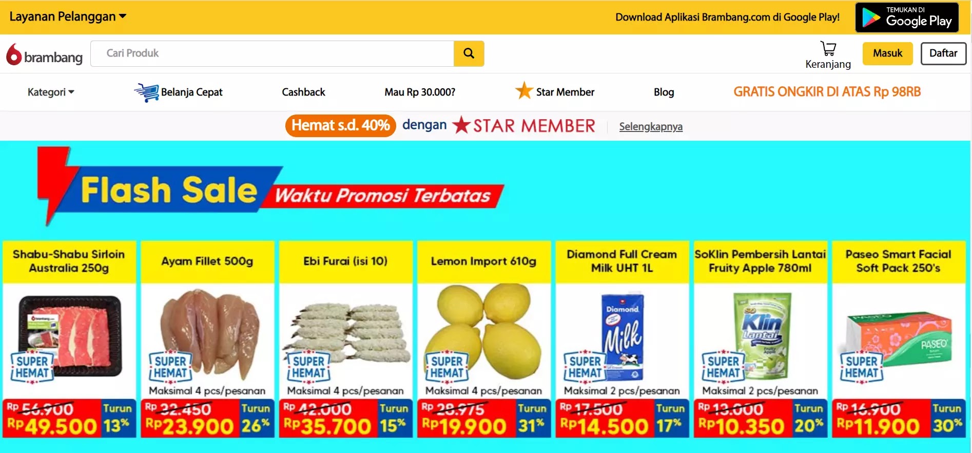 Selain itu, bagi kamu yang berlokasi di daerah Jakarta Selatan, Brambang menawarkan pengiriman instan, dengan minimal pembelian Rp70.000.