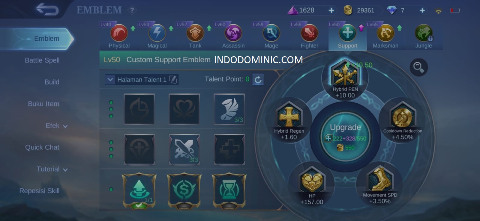 Kenapa Jess No Limit lebih memilih menggunakan Emblem Support dibandingan dengan Emblem Assasin / Marksman ? Dikarenakan terletak di Talent dari emblem Support yang sangat berguna dan cocok untuk Hero Natan.