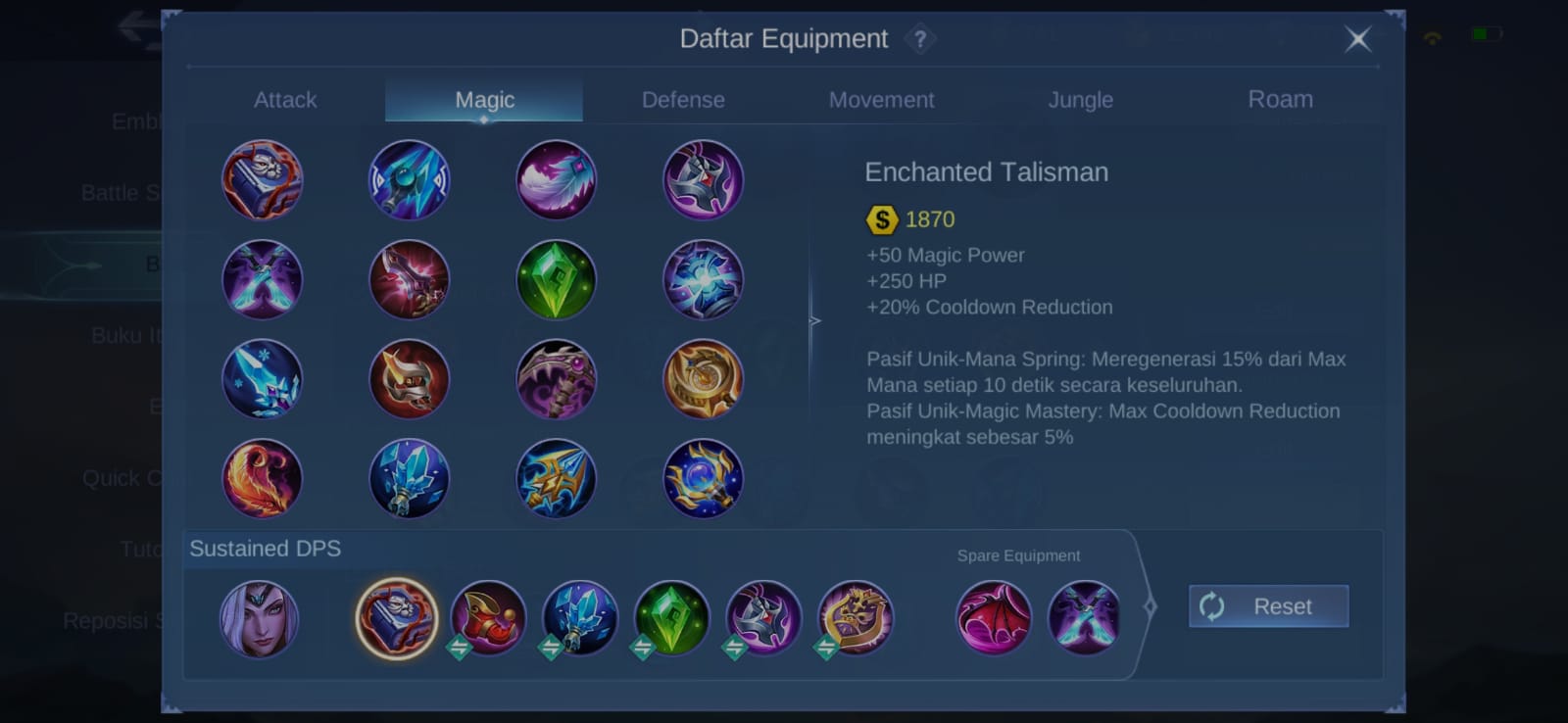 Build Valentina yang pertama yaitu kita bisa menggunakan Enchanted Talisman untuk mengurangi cooldown dari hero valentina dan juga dapat meregenerasi mana dari Valentina. Dikarenakan Hero Valentina ini sangat boros dengan mana.