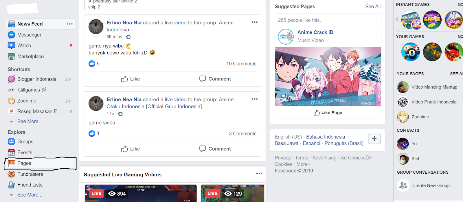 2. Pergi masuk ke daftar halaman atau di https://www.facebook.com/pages/