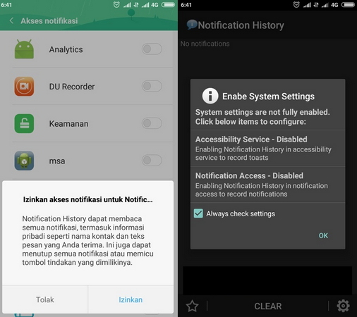 Izinkan Aplikasi Recent Notification atau Sejarah Pemberitahuan pada Ponsel Android Anda