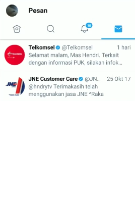 Pertama, sobat buka aplikasi Twitter. Lalu DM / Chat @Telkomsel.