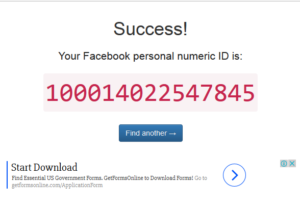 5. Lalu anda akan di bawa ke tampilan selanjutnya dan anda akan melihat nomor id facebook anda, seperti gambar dibawah ini.