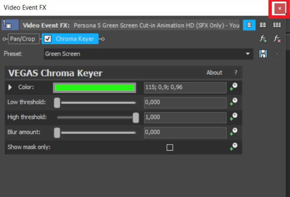 4. Jika muncul tab menu “Video Event FX” / Settingan manual Green Screen tinggal kamu Close / Abaikan saja