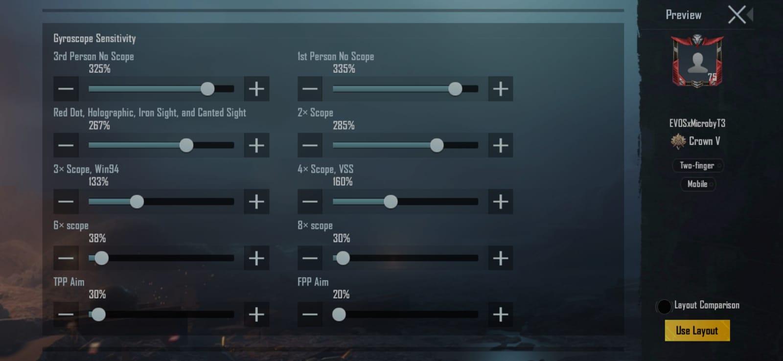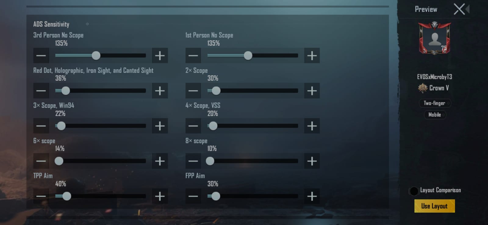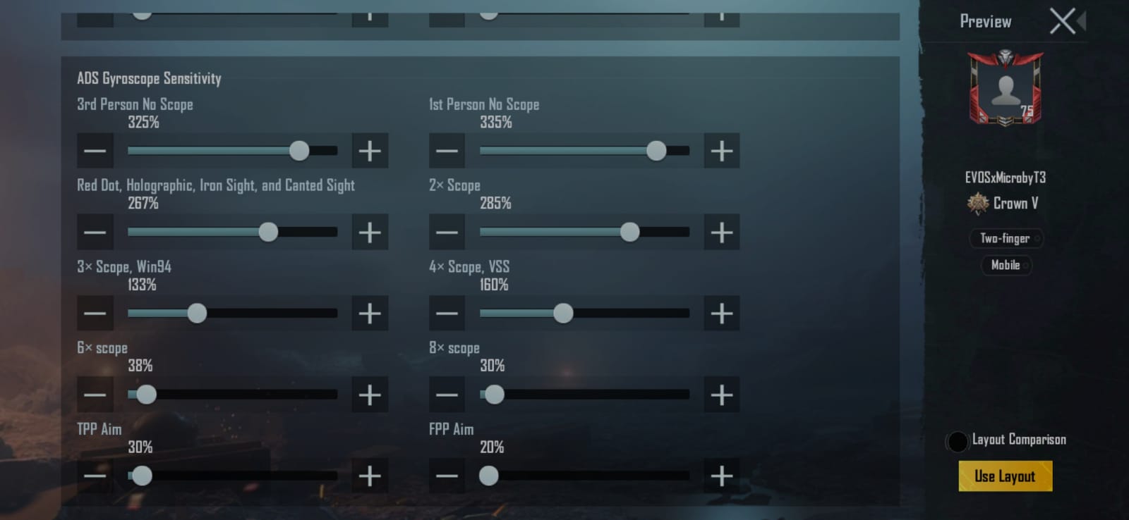 Kamu bisa mencoba langsung sensitivitas pubg evos microboy dibawah ini. Kamu juga bisa langsung menggunakan kode sensitivitas yang sudah saya sediakan dibawah ini tanpa harus mengatur satu per satu settingan sensitivitasnya.
