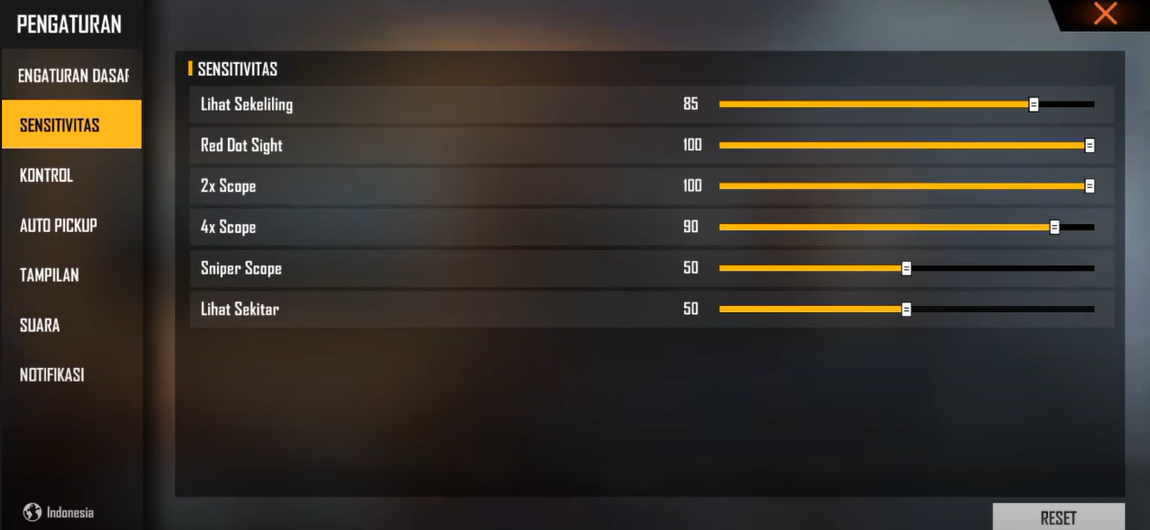 - Selanjutnya kamu geser bar sensitivitas yang berwarna kuning sesuai yang kamu inginkan