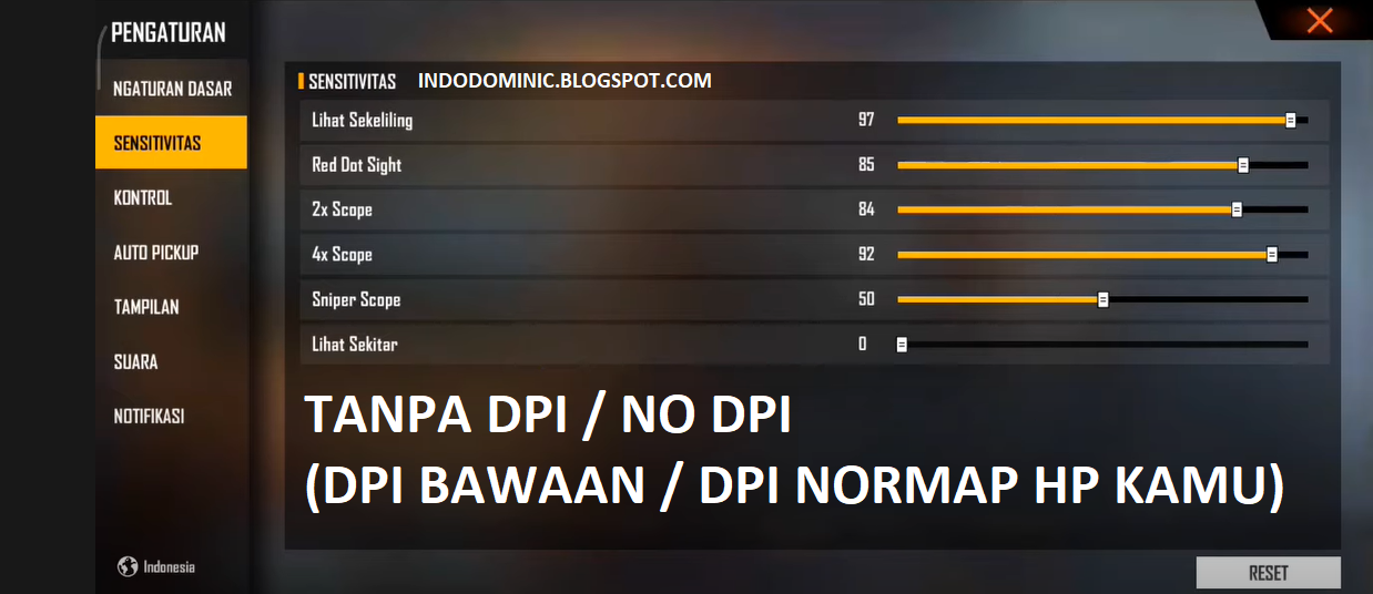 | Sensitivitas Free Fire Auto Headshot Tanpa DPI Versi 1 |